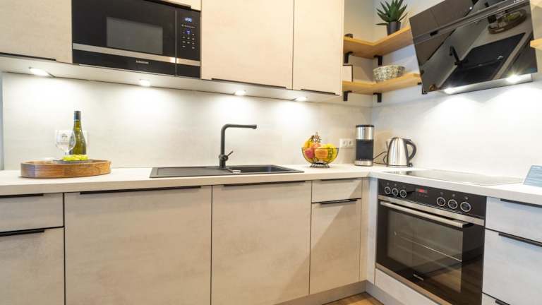 Die Ferienwohnung umfasst 1 Schlafzimmer, ein Wohnzimmer mit einem TV mit Satellitenkanälen, eine voll ausgestattete Küche mit Kühlschrank und Geschirrspüler sowie ein Badezimmer mit Haartrockner.