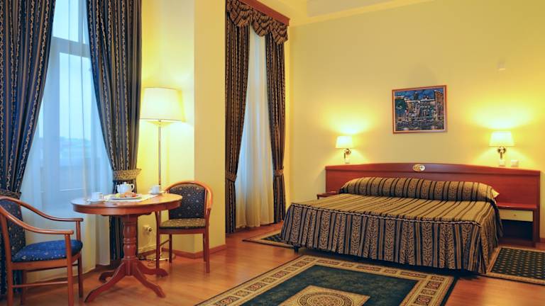 Das Hotel Dostoevsky verfügt über 218 Zimmer, die mit einer Minibar und einem Schreibtisch ausgestattet sind. Zur Grundausstattung gehören auch ein Telefon, ein TV-Gerät, ein Radio und WLAN. Die Badezimmer sind mit einem Haartrockner ausgestattet. Nichtraucherzimmer sind verfügbar und Kinderbetten können auf Anfrage bereitgestellt werden.