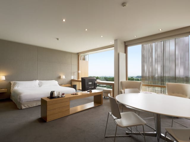 Die Zimmer sind mit einer Klimaanlage und Heizung ausgestattet. Ein Balkon gehört zur Standardausstattung der meisten Zimmer. Sie verfügen über Teppichboden, ein Doppelbett oder ein Kingsize-Bett, ein Safe, eine Minibar und einen Schreibtisch. Zudem stehen ein Minikühlschrank, eine Tee-/Kaffeemaschine sowie ein Bügelset zur Verfügung. Zu den weiteren Annehmlichkeiten zählen ein Telefon mit Direktwahl, ein TV-Gerät und Wifi. Im Badezimmer sind eine Dusche und eine Badewanne sowie ein Haartrockner vorhanden. Es sind auch barrierefreie Zimmer buchbar, und Familienzimmer stehen bereit.