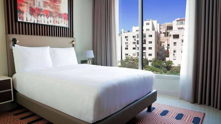 Die Unterkunft Doubletree By Hilton Amman Hotel & Residences befindet sich in Amman, etwa 32 km vom Flughafen Queen Alia entfernt. Die Umgebung bietet verschiedene Sehenswürdigkeiten, darunter den Zahran-Palast in 3,6 km und die Jordan Gate Towers in 4,3 km Entfernung.