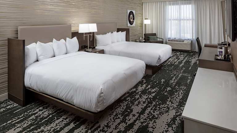 Die Zimmer sind mit einer Klimaanlage und einer Heizung ausgestattet und verfügen über ein Doppelbett. Zustellbetten können angefragt werden. Zur Ausstattung gehören ein Safe, eine Minibar, ein Kühlschrank, eine Mikrowelle sowie eine Tee-/Kaffeemaschine. Die Zimmer sind zudem mit einem Schreibtisch, einem Telefon, einem TV-Gerät und kostenfreiem Wifi ausgestattet. Im Badezimmer finden die Gäste eine Dusche, eine Badewanne und kostenfreie Pflegeprodukte. Es sind auch rollstuhlgerechte Zimmer mit barrierefreiem Badezimmer vorhanden.