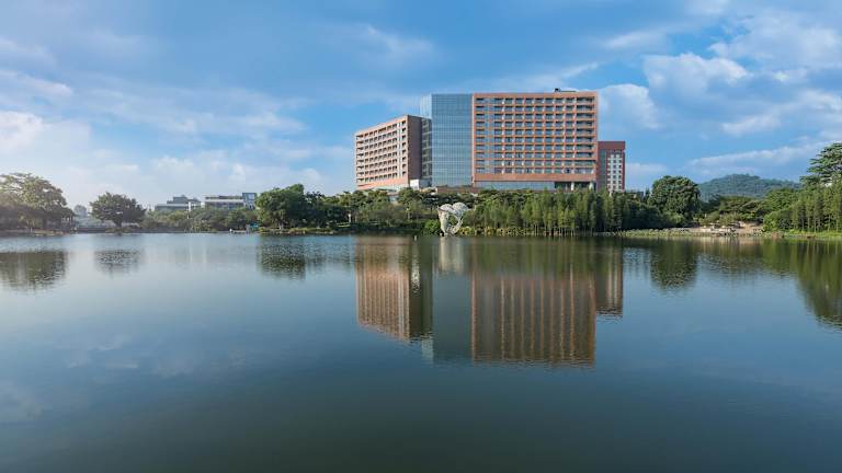 Das DoubleTree by Hilton Hotel Guangzhou - Science City befindet sich im Herzen des dynamischen Guangzhou High Tech Development District. Es liegt in der Nähe des schönen Civil Park, der Straßenbahnlinie Huangpu Line 1, der Regierung des Huangpu District und des Guangzhou Science City Convention Center. Das Hotel bietet eine gute Anbindung an die Baoneng Qoros Arena und ist nur eine kurze 5-minütige Autofahrt entfernt. Das Guangzhou East Railway Station und das Canton Fair Pazhou Complex erreichen Sie nach einer 40-minütigen Fahrt. Der internationale Flughafen Guangzhou Baiyun ist ca. 45 Fahrminuten entfernt. Das Hotel bietet auch eine gute Anbindung an Unternehmen wie LG Display, Grand Tech Park und Jabil Circuit (Guangzhou) Ltd.