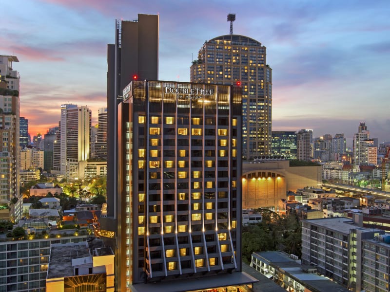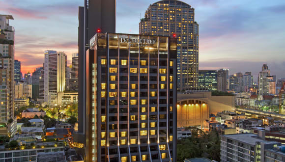 Das DoubleTree by Hilton Hotel Sukhumvit Bangkok bietet eine moderne Unterkunft in einer belebten Umgebung. Die 196 Zimmer und Suiten sind über 24 Etagen verteilt und sind durch Lift zugänglich. Rund um die Uhr steht den Gästen mehrsprachiges Personal zur Verfügung. Zu den Einrichtungen gehören unter anderem eine Gepäckaufbewahrung, ein Safe, ein Geldautomat und ein Garten für entspannte Momente im Freien. WLAN kann kostenfrei genutzt werden, und es sind verschiedene Dienstleistungen wie ein Babysitterservice, Autovermietung und Zimmerservice erhältlich.