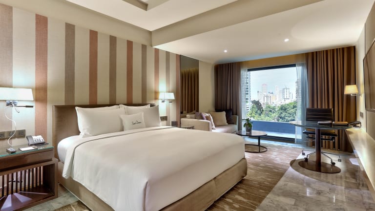 Die Zimmer sind mit Teppichböden und Klimaanlage ausgestattet und bieten Annehmlichkeiten wie einen Safe, eine Minibar, einen Schreibtisch und eine Mikrowelle. Zudem gibt es ein Sofa, ein TV-Gerät, WiFi sowie ein Badezimmer mit Dusche und Badewanne. Zustellbetten können angefordert werden, und es sind rollstuhlgerechte Zimmer verfügbar.