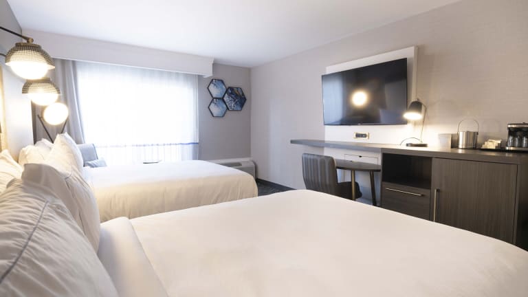 Die Zimmer sind mit Klimaanlage, Heizung, einem Flachbild-Kabel-TV und einem Balkon oder einer Terrasse ausgestattet. Jedes Zimmer verfügt über ein Doppel-, Queensize- oder Kingsize-Bett sowie über einen Safe, einen Schreibtisch, einen Kühlschrank, eine Mikrowelle und eine Tee-/Kaffeemaschine. Die Badezimmer bieten eine Dusche und eine Badewanne sowie Kosmetikartikel und eine Auswahl an Handtüchern. Rollstuhlgerechte Zimmer mit barrierefreiem Badezimmer sind ebenfalls verfügbar.