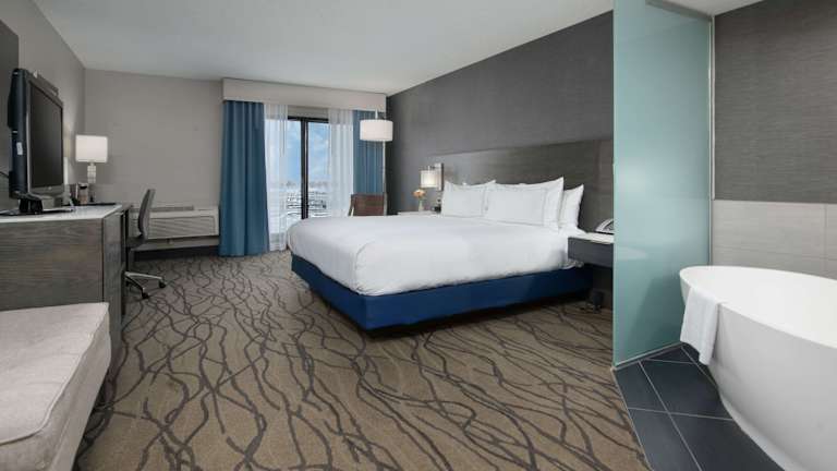 Jedes Zimmer im DoubleTree by Hilton Racine Harbourwalk ist ausgestattet mit einem 37-Zoll-Flachbild-HD-TV mit Premium-Kabelkanälen, Kühlschrank, Kaffeemaschine, iPod-Dockingstation und Safe. Allergikerfreundliche Zimmer sind ebenfalls verfügbar.