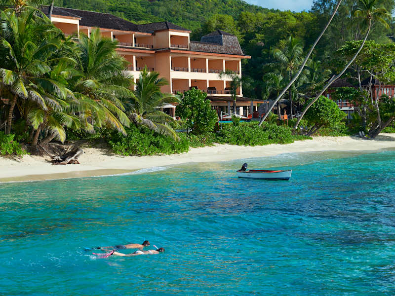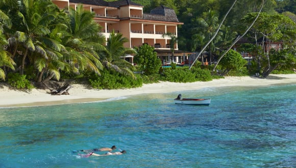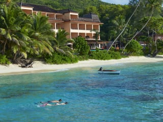 Begin your stay at DoubleTree by Hilton Seychelles - Allamanda Resort and Spa with a warm welcome. Ideally located in the south of Mahé, this resort in Seychelles is located in a charming four-star resort on the main island of the Seychelles. Enjoy the 20-minute scenic ride along the coastal beach road from the Pointe Larue International airport to Anse Forbans. The property provides a superb beach, large granite boulders and is complimented by the surrounding mountain's lush tropical foliage. Unwind in a spacious guest room or suite at this Seychelles resort. Each room feature stylish decor and is rich in comforts where you can enjoy modern amenities such as LCD TVs and complimentary high-speed internet access. Choose from ocean view rooms with a large balcony or spacious deluxe ocean view rooms, offering special amenities including a relaxing whirlpool, comfortable chairs and sofa. Enjoy breakfast, lunch & a la carte international dinner at Les Palms Restaurant and take in the breathtaking Indian Ocean views from the terrace. Oceanview bar is the perfect place for some cocktails and premium spirits during your stay. Stay active during your stay and work out in the fitness center with a range of high-tech equipment including treadmills, weight machines and exercise stations. For a more relaxing activity, take a dip in the sparkling outdoor swimming pool or indulge in a luxurious treatment at the hotel spa. Corporate guests will appreciate our fully equipped business center, offering complimentary high-speed internet access and a variety of efficient equipment for your convenience.