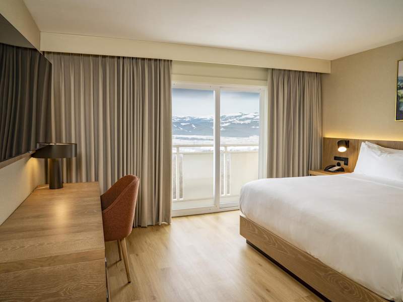 Die Zimmer sind mit Klimaanlage, Heizung und einem Balkon oder einer Terrasse ausgestattet. Zur Einrichtung gehören ein Queensizebett, ein Sofabett sowie ein Schreibtisch. Die Zimmer verfügen zudem über Kühlschrank, Mikrowelle und eine Tee-/Kaffeemaschine. Ein Bügelset, Telefon, Sat-TV und kostenloses Wifi sind ebenfalls vorhanden. Die Badezimmer sind mit einer Dusche, einem Haartrockner und Kosmetikartikeln ausgestattet. Für Gehbehinderte sind auch rollstuhlgerechte Zimmer buchbar.