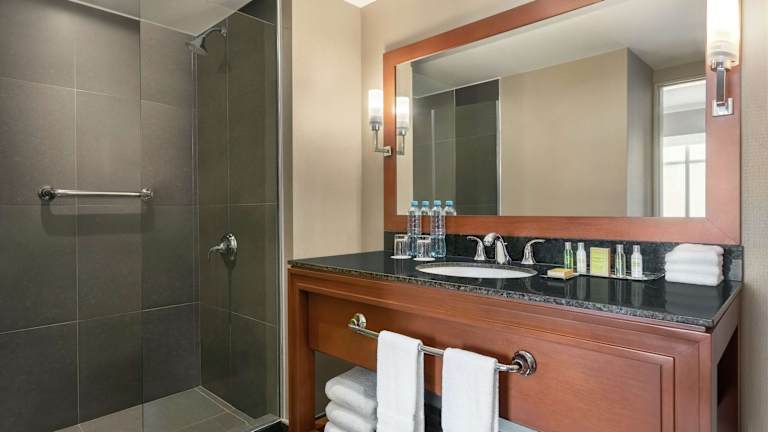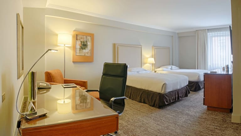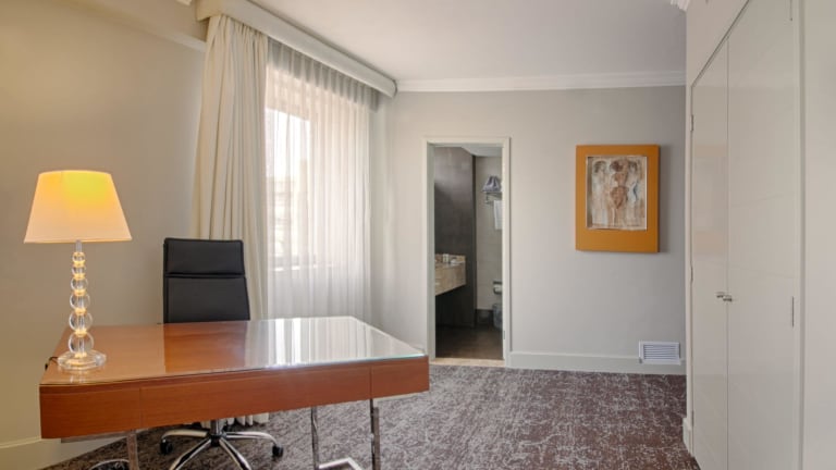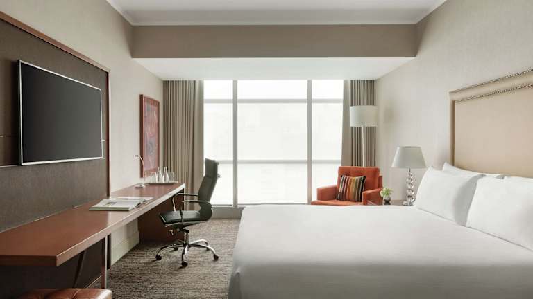Die Zimmer sind mit Klimaanlage und Heizung ausgestattet und bieten einen Stadtblick von Balkon oder Terrasse. Die Einrichtung umfasst ein Doppelbett, eine Minibar, einen Schreibtisch sowie eine Mikrowelle und eine Tee-/Kaffeemaschine. Gäste finden in den Badezimmern sowohl eine Dusche als auch eine Badewanne. WLAN ist in den Zimmern ohne Gebühr verfügbar.