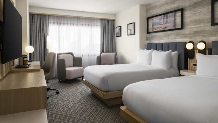 Die Zimmer sind mit Teppichböden ausgestattet und verfügen über ein Doppelbett oder ein Kingsize-Bett. Eine individuell steuerbare Klimaanlage und Heizung sorgen für ein angenehmes Raumklima. Die Unterkünfte sind mit einem Safe, einem Schreibtisch, einem Kühlschrank und einer Tee-/Kaffeemaschine ausgestattet. Ein Bügelset sowie ein Telefon mit Direktwahl, ein TV-Gerät und WiFi sind ebenfalls vorhanden. Die Badezimmer sind mit Dusche und Badewanne sowie Kosmetikartikeln ausgestattet.