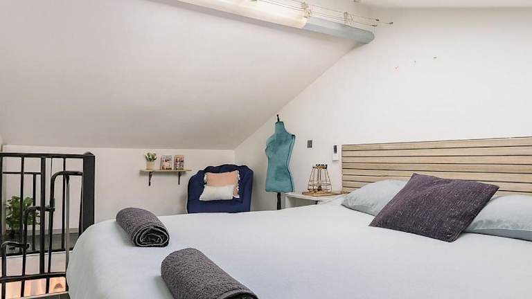 Die Ferienwohnung umfasst ein Schlafzimmer, eine Küche mit einem Kühlschrank und einem Ofen sowie einen Flachbild-TV. Ein Sitzbereich und ein Badezimmer mit Dusche sind ebenfalls vorhanden. Handtücher und Bettwäsche werden zur Verfügung gestellt.