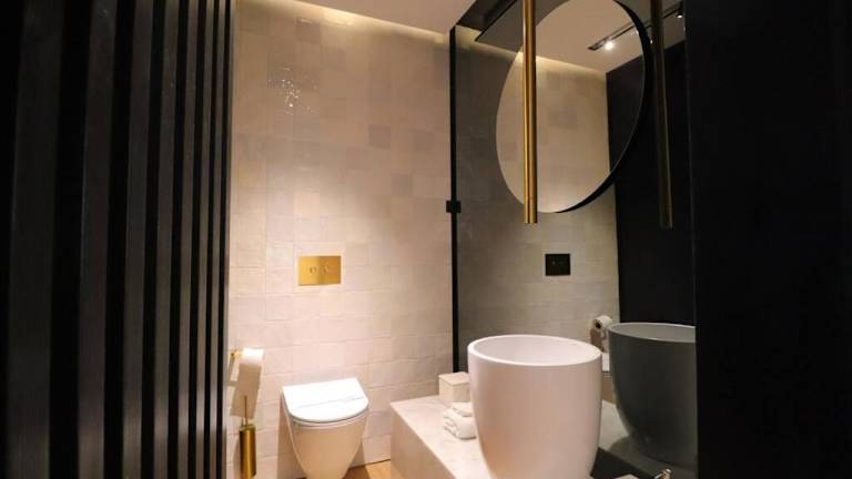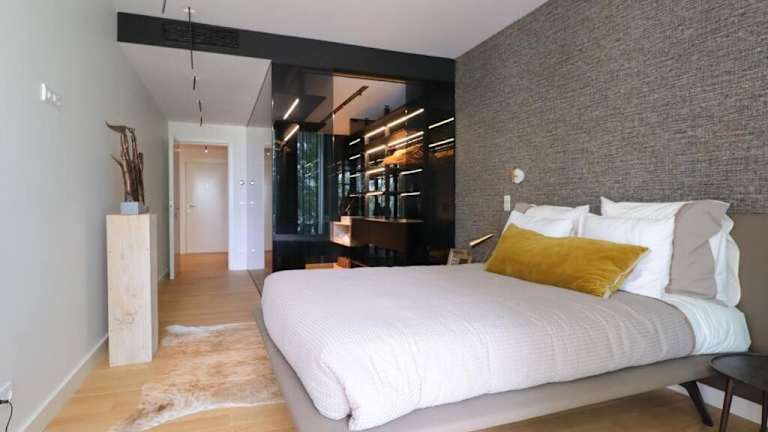 Die Ferienwohnung umfasst ein separates Schlafzimmer, zwei Badezimmer sowie ein Wohnzimmer. Die Einrichtung ist modern gestaltet und bietet einen komfortablen Aufenthalt.