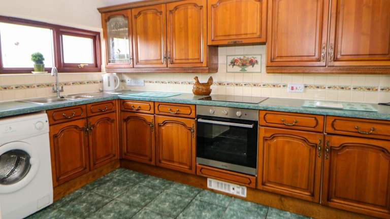 Das Ferienhaus verfügt über 2 Schlafzimmer und einen gemütlichen Sitzbereich. Die Küche ist mit einem Kühlschrank ausgestattet, ideal für die Zubereitung eigener Mahlzeiten.