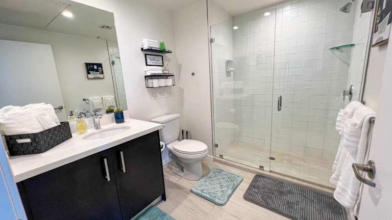 Die Zimmer sind klimatisiert und bieten einen Balkon sowie eine voll ausgestattete Küche mit Kühlschrank und Geschirrspüler. Ein Flachbild-Kabel-TV sowie ein eigenes Badezimmer mit Dusche und kostenlosen Pflegeprodukten stehen zur Verfügung. Zusätzlich gibt es ein eigenes Badezimmer mit Whirlpool und Haartrockner.