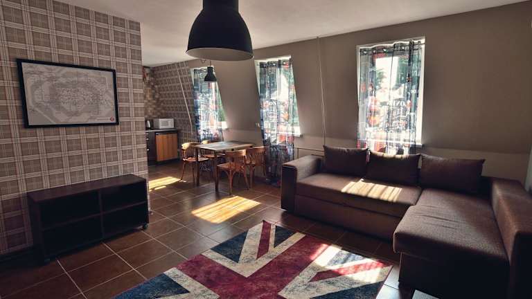 Die Wohneinheiten sind komfortabel eingerichtet und umfassen eine Küche mit den wesentlichen Geräten. Dazu gehören ein Kabel Flachbild-TV, Bügelmöglichkeiten, ein Schreibtisch, ein Sitzbereich und weitere Annehmlichkeiten, die den Aufenthalt angenehm gestalten.
