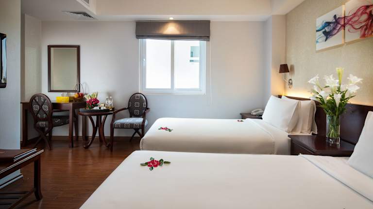 Das Dragon Pearl Hotel befindet sich in Hanoi und ist nur 100 m vom Dong Xuan Markt entfernt. Die Lage des Hotels ermöglicht es den Gästen, die Altstadt Hanois zu erkunden und die Atmosphäre und Kultur der Stadt hautnah zu erleben. Der internationale Flughafen Noi Bai ist ebenfalls gut erreichbar und liegt etwa 40 Autominuten vom Hotel entfernt.