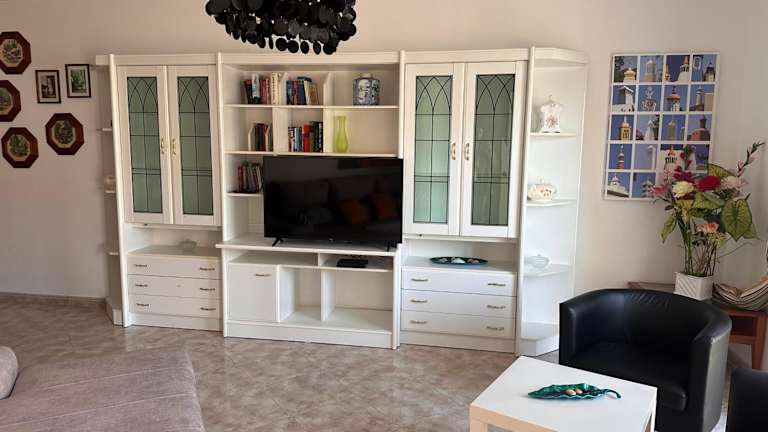 Die Ferienwohnung besteht aus 3 Schlafzimmern, einem Wohnzimmer, 2 Badezimmern mit Bidet und Dusche sowie einer voll ausgestatteten Küche mit Kühlschrank und Kaffeemaschine. Ein Flachbild-TV sorgt für Unterhaltung. Die Einrichtung ist behaglich und bietet Platz für Familien oder Gruppen.