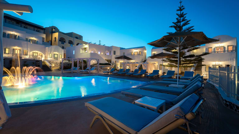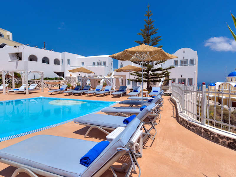 Das Dream Island Hotel befindet sich im kykladischen Stil in einer ruhigen Lage, nur drei Gehminuten vom Zentrum von Fira, Santorini entfernt. Vom Hotel aus geniesst man einen herrlichen Blick auf die Ägäis. Der beliebte Strand Perissa ist nach einer circa 20-minütigen Fahrt zu erreichen.