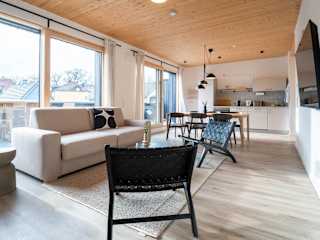 In jeder Wohneinheit gibt es eine voll ausgestattete Küche mit Esstisch, einen Flachbild-TV mit Satellitenkanälen sowie ein eigenes Badezimmer mit Dusche, kostenlosen Pflegeprodukten und Haartrockner. Zu den Küchengeräten zählen Kühlschrank, Geschirrspüler, Ofen, Kaffeemaschine und Wasserkocher.