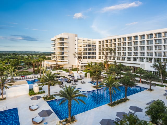Das 5* Dreams Karibana CartagenaGolf & Spa Resort mit seiner exklusiven Lage zur historischen Stadt Cartagena gehört zu Hyatt's Inclusive Collection und bietet geräumige Suiten mit einem herrlichen Blick auf das Meer und eine üppige Flora und Fauna. Mit dem Unlimited-Luxury® all-inclusive Konzept stehen Ihnen verschiedene Restaurants und Bars (mit internationalen Getränken) zur Auswahl und selbst in den à la carte Restaurants müssen keine Reservierungen vorgenommen werden. Dank einer täglich aufgefüllten Minibar, 24h Zimmerservice, Pool- und Strandservice, kostenlosem Wifi und einem reichen Angebot an Aktivitäten und Unterhaltungsprogramm fehlt Ihnen hier an nichts. Wer es etwas exklusiver mag, dem werden die besonderen Serviceleistungen gefallen, die bei den Preferred Club Kategorien hinzukommen. Das Hotel bietet zusätzlich 1x am Tag einen kostenlosen Shuttle in die Altstadt von Cartagena. Gäste erhalten zudem vergünstigte Green Fees auf dem nahegelegenen Golfplatz (Reservierung über den Concierge). Hier muss kein all-inclusive Armband getragen werden.