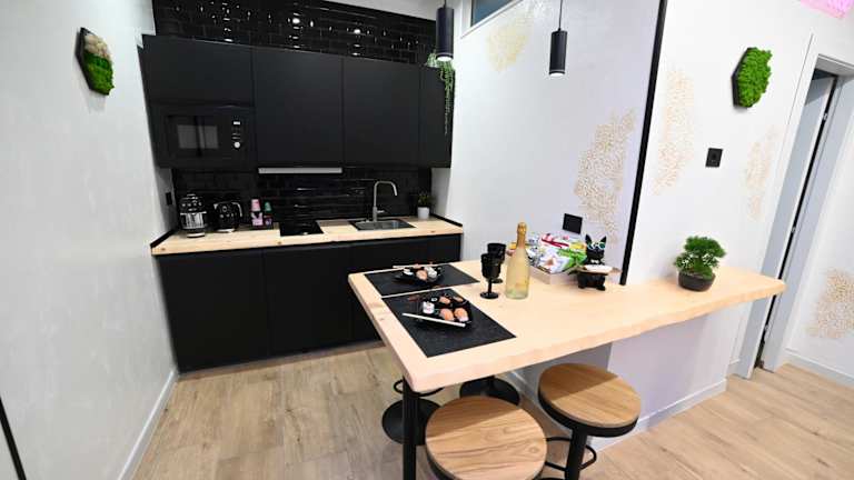 Die Ferienwohnung verfügt über ein Schlafzimmer, ein Wohnzimmer und eine voll ausgestattete Küche mit Kühlschrank und Kaffeemaschine. Zudem beinhaltet die Ausstattung ein Badezimmer mit Bidet und Dusche. Handtücher und Bettwäsche werden bereitgestellt, und es sind allergikerfreundliche Zimmer verfügbar.