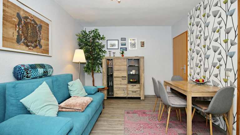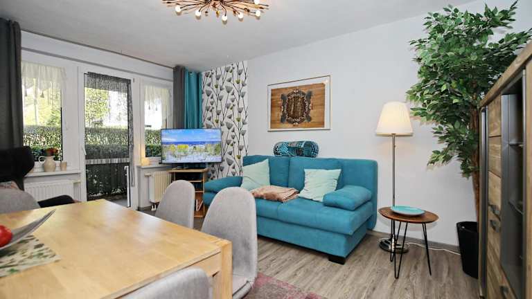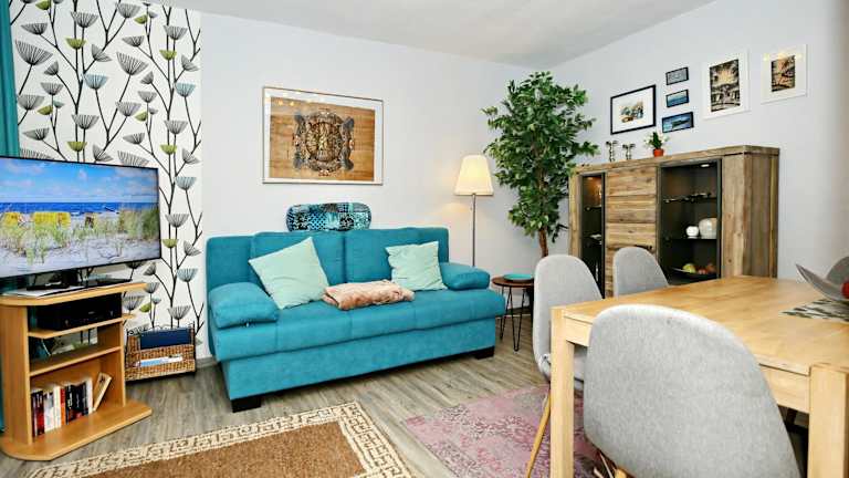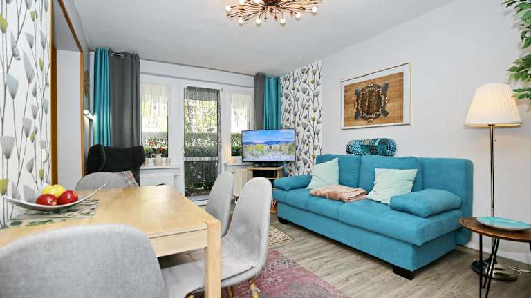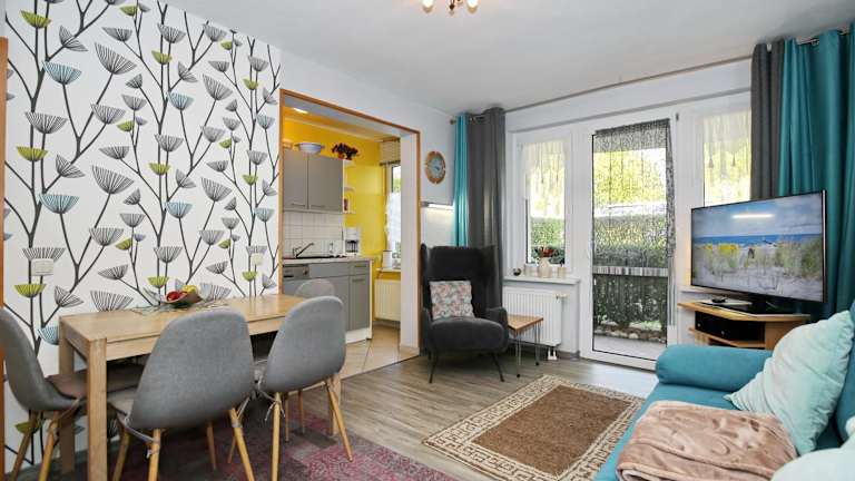 Die Ferienwohnung verfügt über ein Schlafzimmer, eine gut ausgestattete Küche mit Kühlschrank und Geschirrspüler, ein Wohnzimmer sowie einen TV. Bettwäsche und Handtücher sind nicht im Zimmerpreis inbegriffen, können jedoch gegen Gebühr geliehen werden.