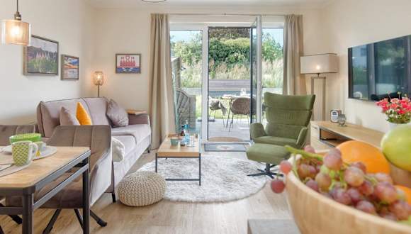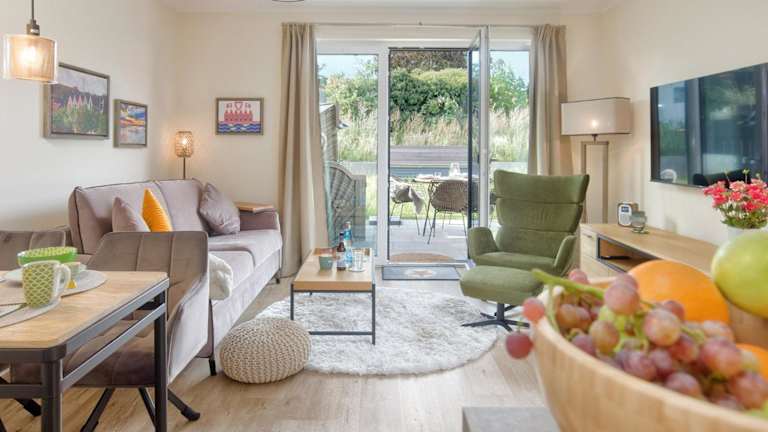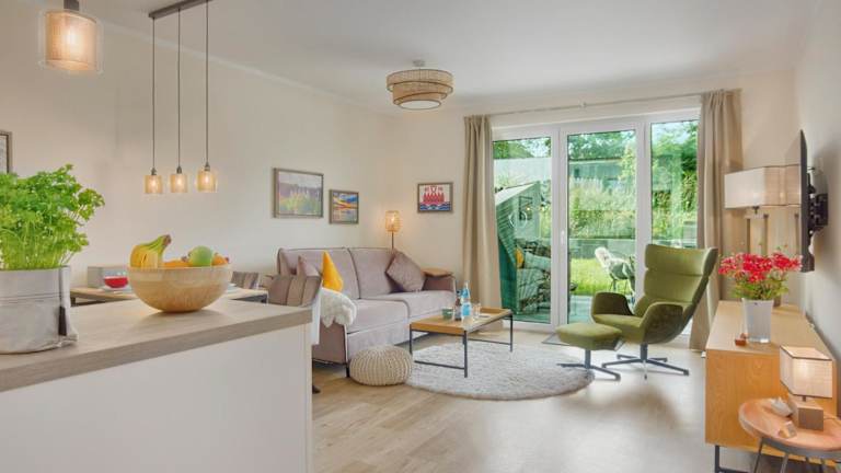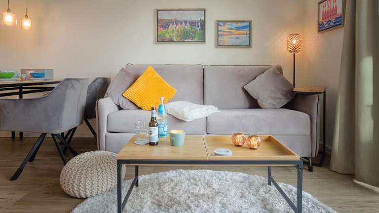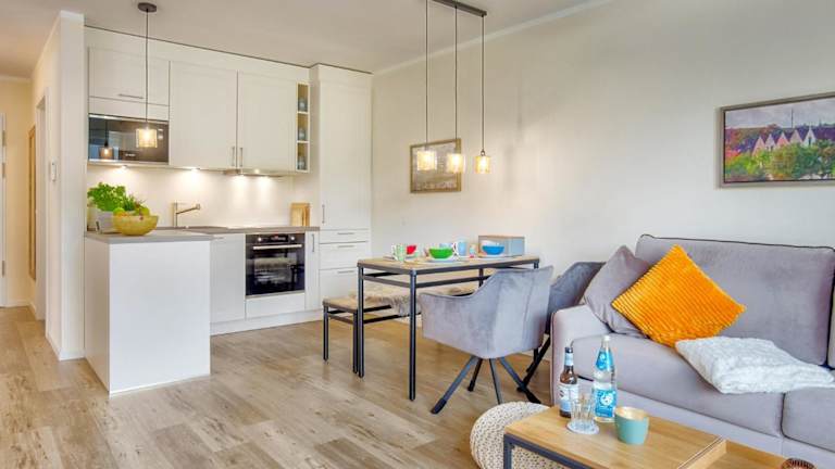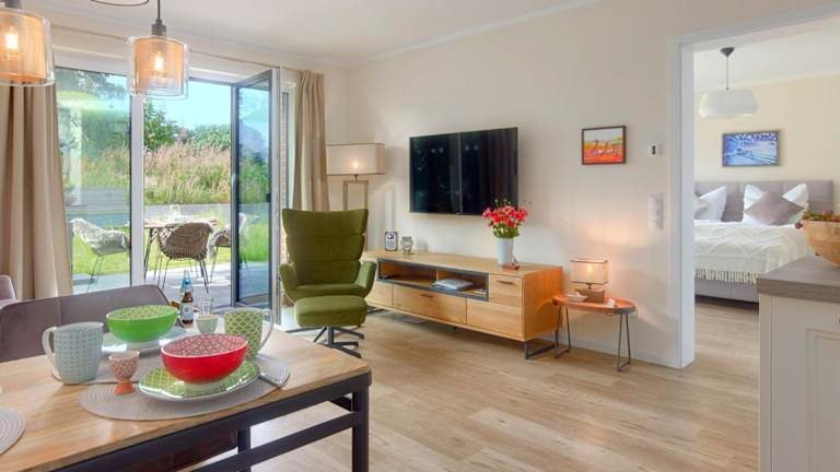 Die Ferienwohnung verfügt über 1 Schlafzimmer, ein Wohnzimmer, einen Flachbild-TV, eine gut ausgestattete Küche mit Kühlschrank und Geschirrspüler sowie 1 Badezimmer mit Dusche. Auf Wunsch können Handtücher und Bettwäsche gegen Aufpreis zur Verfügung gestellt werden.