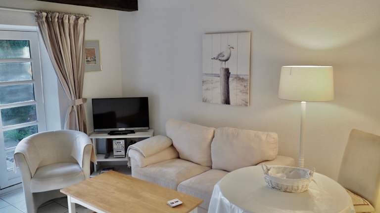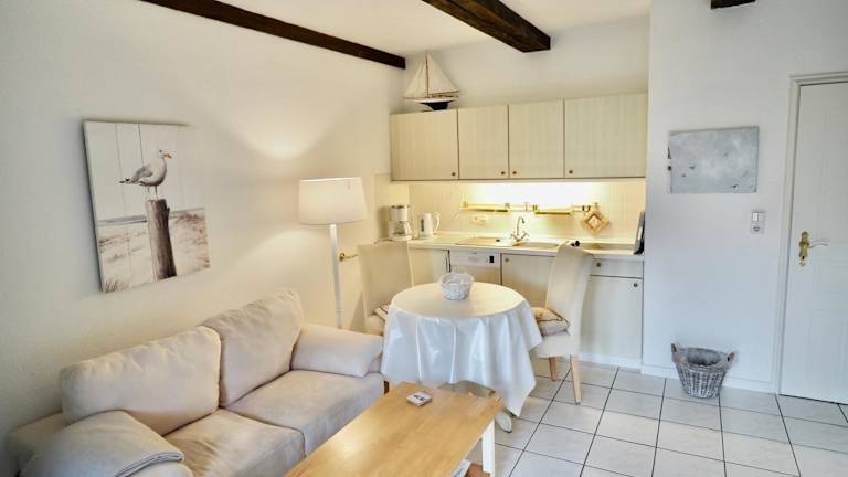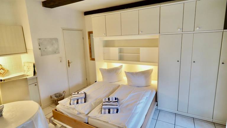 Die Ferienwohnung umfasst 1 Schlafzimmer und ist ausgestattet mit einer voll ausgestatteten Küchenzeile, die einen Kühlschrank und einen Geschirrspüler umfasst. Ein Badezimmer mit Dusche und Haartrockner ist ebenfalls vorhanden. Handtücher und Bettwäsche werden bereitgestellt, um den Gästen zusätzlichen Komfort zu bieten.