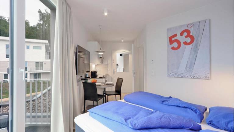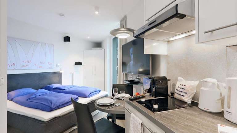 Die Ferienwohnung verfügt über ein Schlafzimmer, ein Wohnzimmer mit Essbereich, ein Badezimmer mit Dusche sowie eine voll ausgestattete Küche. Zur Ausstattung gehören ein TV, ein Blu-ray-Player und ein CD-Player.