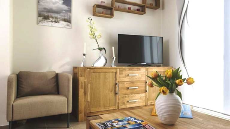 Die Ferienwohnung besteht aus einem Schlafzimmer und ist mit einem Wohnzimmer ausgestattet, das über einen Flachbild-TV mit Satellitenkanälen verfügt. Eine voll ausgestattete Küchenzeile mit Kühlschrank und Geschirrspüler ist ebenfalls vorhanden. Zudem gibt es 1 Badezimmer mit einer Dusche.