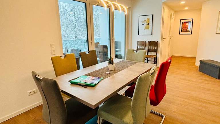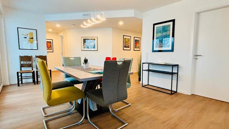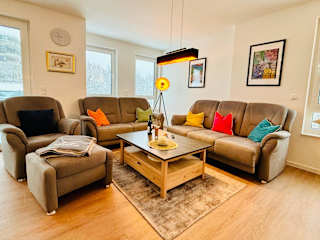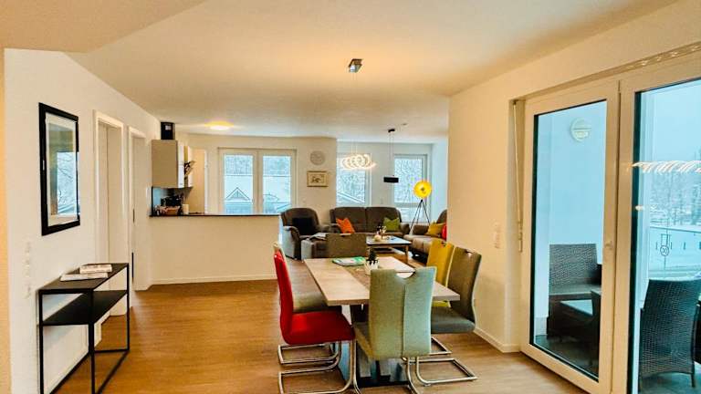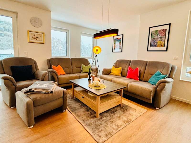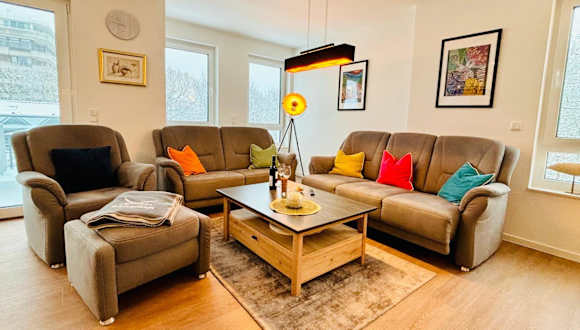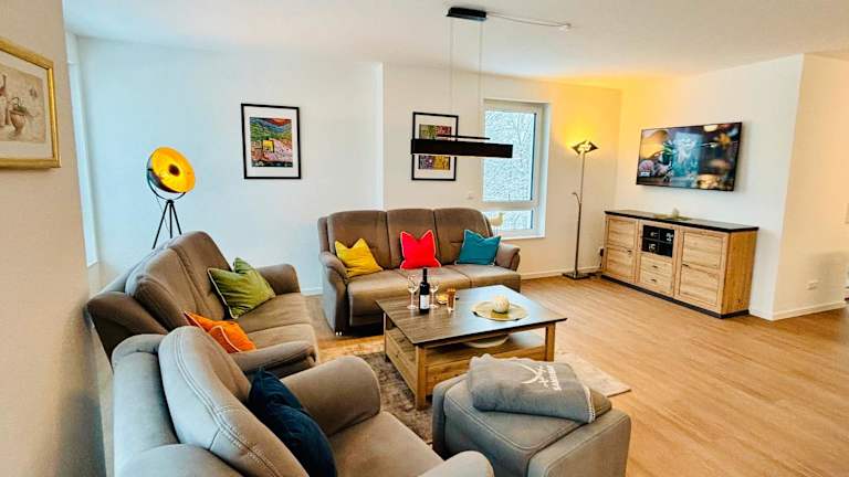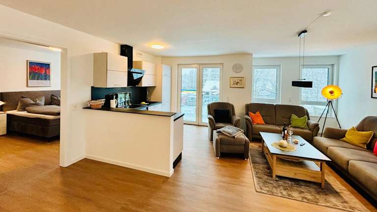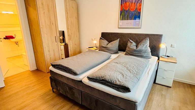 Die Ferienwohnung beinhaltet zwei Schlafzimmer, eine voll ausgestattete Küche mit Kühlschrank und Geschirrspüler sowie zwei Badezimmer, die jeweils mit einer Dusche und einer Badewanne versehen sind. Zudem steht ein Fernseher zur Verfügung. Die Bequemlichkeit der Ausstattung sorgt für einen angenehmen Aufenthalt.