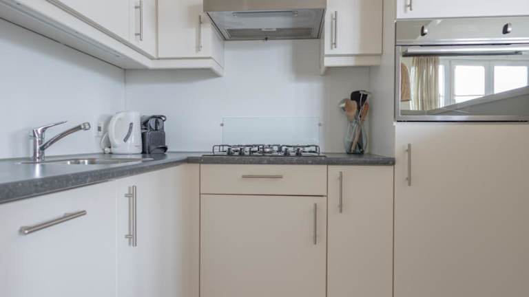 Die Ferienwohnung umfasst zwei Schlafzimmer und eine gut ausgestattete Küche mit Kühlschrank und Geschirrspüler. Ein Flachbild-TV, ein einladender Sitzbereich sowie ein Badezimmer mit Dusche sind ebenfalls vorhanden. Handtücher und Bettwäsche können gegen Aufpreis bereitgestellt werden.