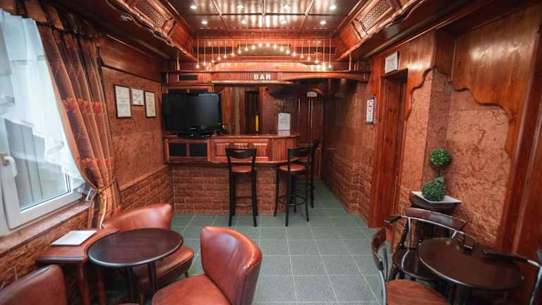 Es gibt eine Bar in der Unterkunft, jedoch sind keine spezifischen Informationen zu weiteren Verpflegungsmöglichkeiten vorhanden.