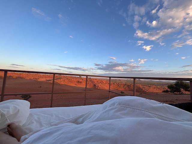 Das Dune Star Camp liegt idyllisch im Naturschutzgebiet der Namib, inmitten der atemberaubenden Wüstenlandschaft, etwa 60 km vom Eingangstor des Sossusvlei entfernt. Der Flughafen Hosea Kutako International Airport ist ca. 326 km entfernt, mit einer Fahrzeit von etwa 5 Stunden. Der nächste Ort Solitaire ist etwa 35 km entfernt.