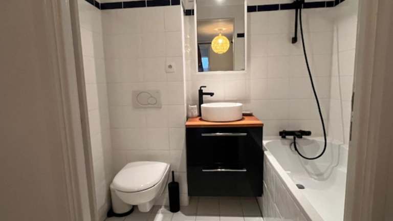 Die Unterkunft Duplex 10 minutes from the beach in Trouville ist in Trouville-sur-Mer gelegen, nur 800 m vom Strand von Trouville entfernt. Der Strand von Deauville befindet sich in 2 km Entfernung, während das Casino Barrière Trouville lediglich 600 m entfernt ist. Zu den weiteren in der Nähe liegenden interessanten Orten zählen der SNCF-Bahnhof Trouville-Deauville, Port Morny und das Casino Barrière Deauville. Der nächstgelegene Flughafen, der Flughafen Deauville, ist 5 km von der Unterkunft entfernt.