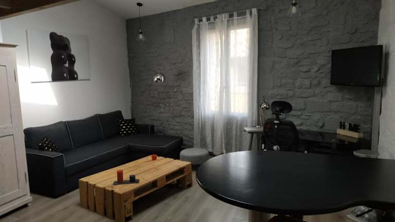 Das Duplex au Coeur de Lunel bietet Übernachtungsmöglichkeiten in einer Heimeligkeit, ausgestattet mit kostenlosem Wifi und einem Flachbild-TV. Die Unterkunft verfügt über eine Klimaanlage, die für Bequemlichkeit sorgt.
