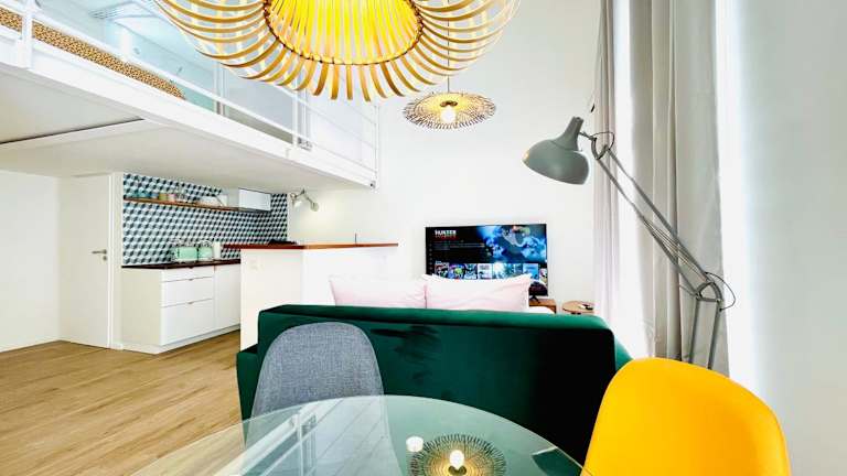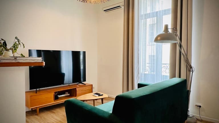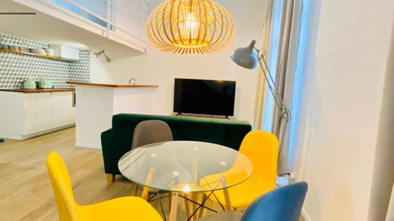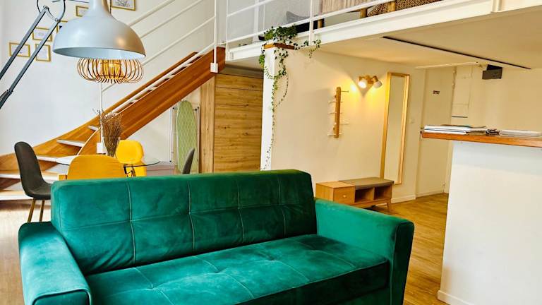 Das Duplex mit einer Deckenhöhe von 1,9 m bietet eine heimelige Atmosphäre und ist mit Klimaanlage ausgestattet. Diese Ferienwohnung verfügt über Stadtblick und einen Balkon, sowie über einen kostenlosen Parkplatz und die Möglichkeit des Selbst-Check-ins.