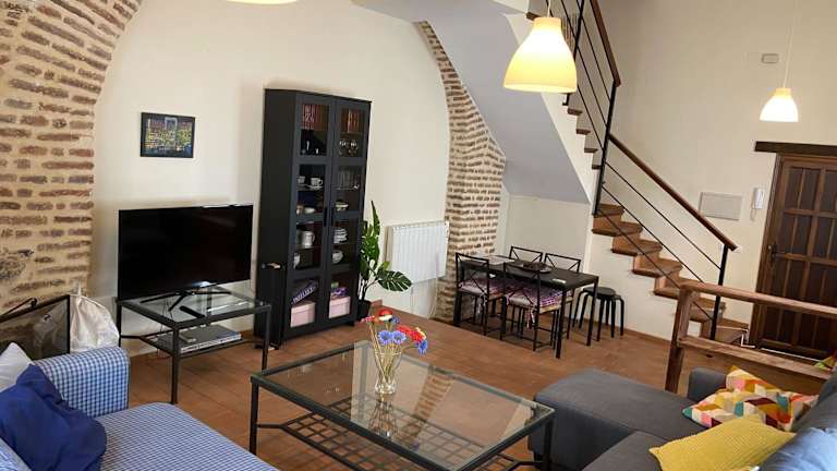 Dúplex con piscina en centro Cazalla verfügt über klimatisierte Übernachtungsmöglichkeiten mit einem eigenen Pool und bietet einen saisonalen Aussenpool sowie Stadtblick. Die Unterkunft wird von einem privaten Gastgeber geführt und ist eine Nichtraucherunterkunft.