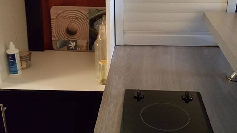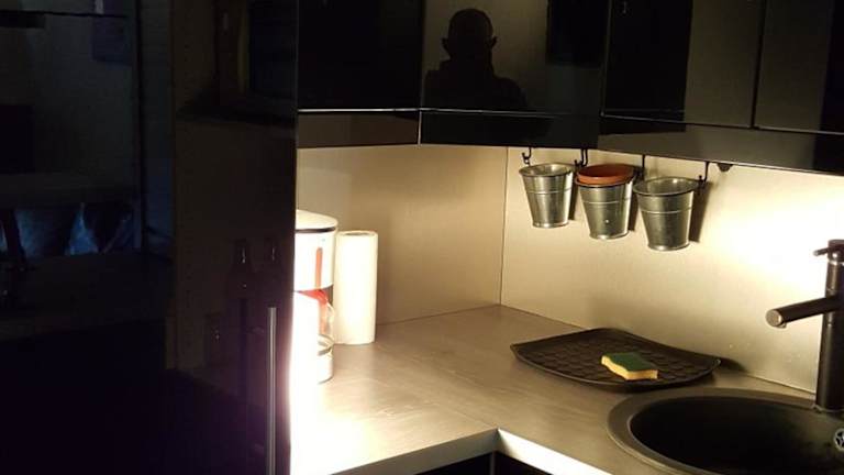 Die Ferienwohnung bietet ein Schlafzimmer, eine voll ausgestattete Küche mit Kühlschrank und Ofen sowie ein Badezimmer mit Dusche und Haartrockner.