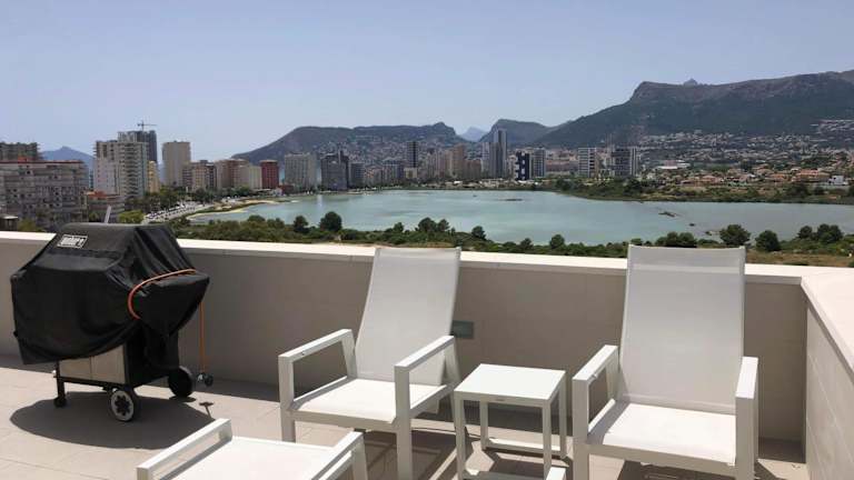 Das Duplex Penthouse bietet eine herrliche Aussicht auf das Meer und verfügt über einen Aussenpool sowie einen Balkon. Die klimatisierte Ferienwohnung hat zudem eine Terrasse mit Stadtblick.