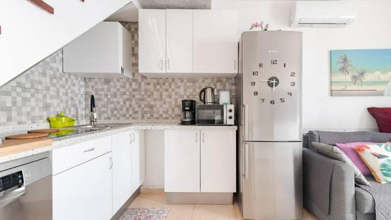 Das Ferienhaus umfasst ein Schlafzimmer, ein Wohnzimmer sowie eine voll ausgestattete Küche mit Kühlschrank und Kaffeemaschine. Es gibt ein Badezimmer mit Dusche und kostenlosen Pflegeprodukten. Handtücher und Bettwäsche werden zur Verfügung gestellt.