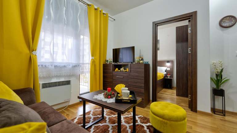 Das Durmitor 41, kompleks Titova Vila in Palisad ist ein charmantes Apartment mit einer Bar, kostenfreiem WLAN und einem schönen Garten. Genießen Sie Ihre Mahlzeiten im hoteleigenen Restaurant oder entspannen Sie auf der Terrasse. Das Apartment verfügt über eine gut ausgestattete Küche, ein gemütliches Schlafzimmer und ein modernes Badezimmer. Handtücher und Bettwäsche werden gestellt. Für Familien gibt es einen Kinderspielplatz und Sportbegeisterte können die Umgebung beim Wandern, Skifahren und Radfahren erkunden. Das freundliche Personal arrangiert gerne einen Fahrradverleih für Sie. Der Flughafen Morava ist etwa 104 km entfernt und ein kostenpflichtiger Flughafentransfer wird angeboten.