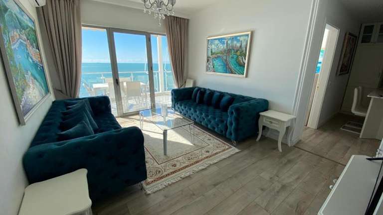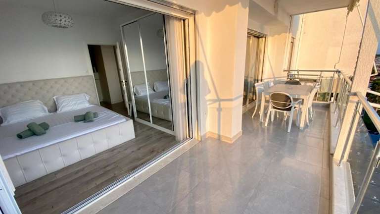 Die Ferienwohnung Durrës BelleVue 3 bdm Apartment bietet eine helle und einladende Atmosphäre mit einer voll ausgestatteten Küche und einem gemütlichen Wohnzimmer. Gäste können den Balkon nutzen, um die schöne Aussicht zu geniessen.