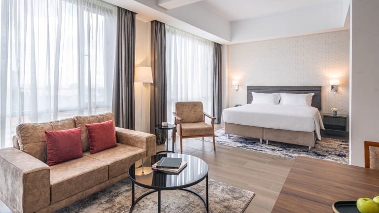 Die Zimmer sind mit einem Doppelbett, einem Sofabett sowie einem Safe ausgestattet. Zustellbetten sind auf Anfrage erhältlich. Kostenloses Wifi steht zur Verfügung und rollstuhlgerechte Zimmer mit barrierefreien Badezimmern sind buchbar. Familien- und Nichtraucherzimmer sind ebenso verfügbar.