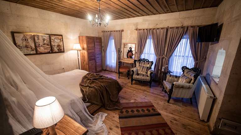 Das Duven Hotel ist ein charmantes Boutique-Hotel direkt neben der Burg von Uchisar. Mit seiner einzigartigen Architektur aus Stein und seinen authentisch eingerichteten Zimmern bietet es den Gästen eine besondere Atmosphäre und modernen Komfort. Genießen Sie den Blick auf den Burgfelsen von Uchisar oder die Feenkamine und starten Sie jeden Tag mit einem köstlichen Frühstück aus lokalen Zutaten. Das Hotel bietet auch regionale Köstlichkeiten im À-la-carte-Restaurant und eine gemütliche Bar. Entspannen Sie sich im Innenhof oder nutzen Sie den Massageservice für pure Erholung.