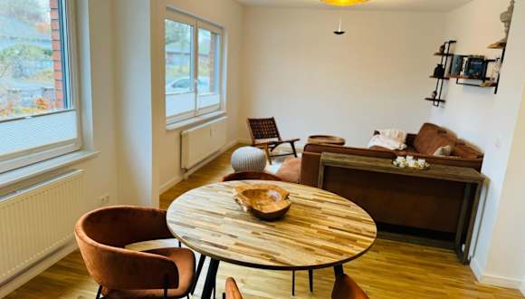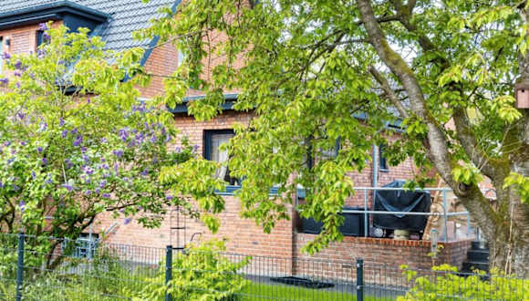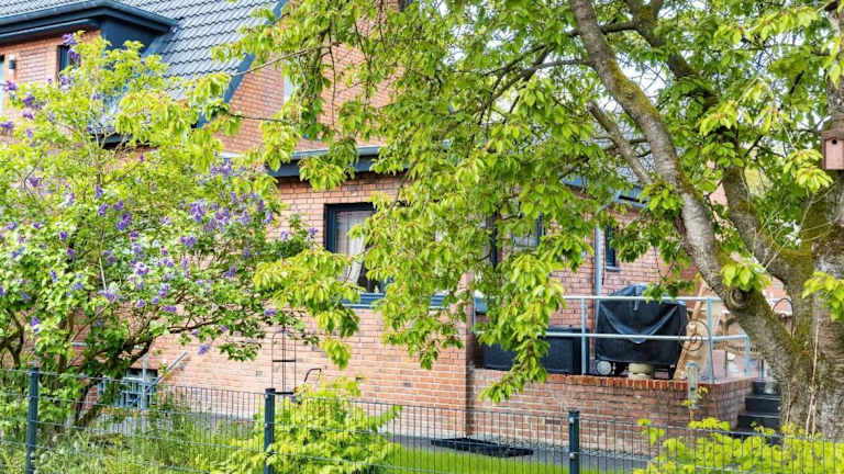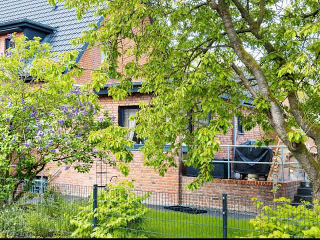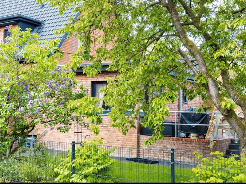 Die Unterkunft Duvenstedter Rotklinker bietet eine heimelige Ferienwohnung mit direktem Zugang zu einer Terrasse, die einen schönen Gartenblick bietet.