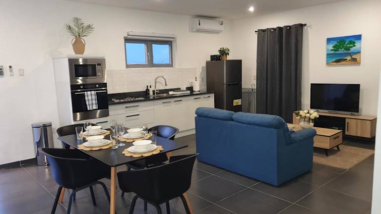 Die Ferienwohnung verfügt über ein Schlafzimmer, ein Wohnzimmer, eine Klimaanlage und einen Flachbild-TV. Zusätzlich ist sie mit einer Küchenzeile ausgestattet. Die Gäste haben Zugang zu kostenlosem Wifi, einem Safe und Nichtraucherzimmern. Handtücher und Bettwäsche werden nach den Richtlinien der örtlichen Behörden gewaschen.