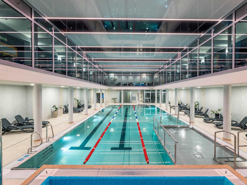 Die Unterkunft bietet verschiedene Freizeitmöglichkeiten, darunter einen Innenpool, einen Whirlpool sowie einen beheizten Pool. Zudem ist ein Kinderbecken vorhanden. Das Gartenareal verfügt über Spielgeräte für Kinder und einen Picknickbereich.