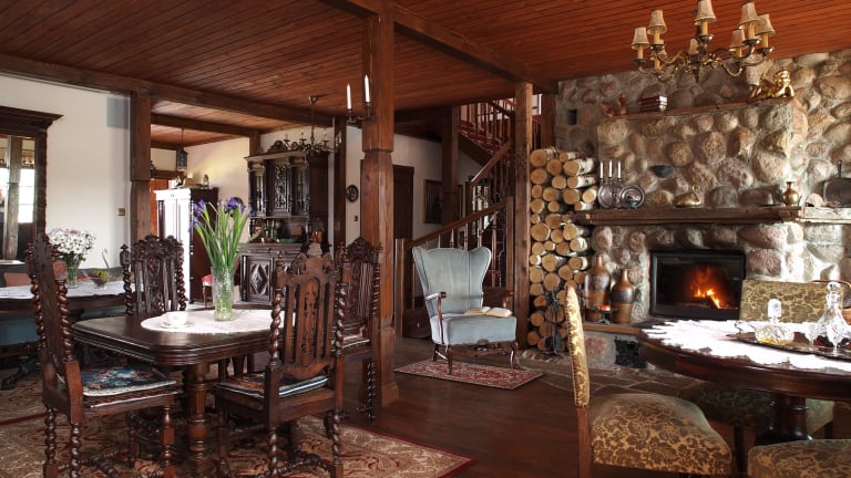 Die Zimmer im Dwór Łabędzie w Kiermusach sind stilvoll mit dunklen Holzmöbeln eingerichtet und bieten einen komfortablen Sitzbereich sowie ein geräumiges eigenes Bad. Kostenloses WLAN ist in allen Zimmern verfügbar.