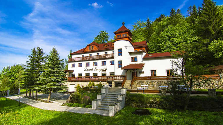 Im Dworek Szwajcaria können Gäste ein Buffet- oder kontinentales Frühstück geniessen. Das hoteleigene Restaurant ist auf polnische Küche spezialisiert und bietet eine Vielzahl an kulinarischen Angeboten. Auf Anfrage sind auch spezielle Menüs für besondere Ernährungsbedürfnisse erhältlich.
